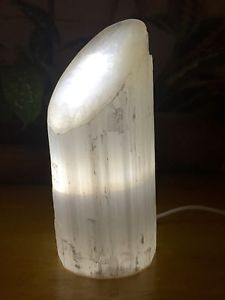 Selenite Lamps are truly a unique piece of crystal and produced from a naturally clear or opaque form of gypsum crystal. On our selenite crystal lamp the milky white structure lights up beautifully.